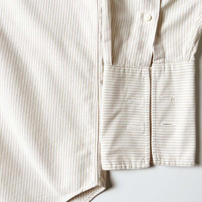 合わせやすい、ホワイト×ベージュの2トーンストライプ