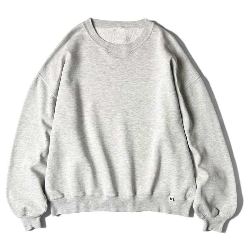 90s RUSSELL 無地 前V スウェット トレーナー / 90年代 オールド ラッセル 霜降り グレー スエット