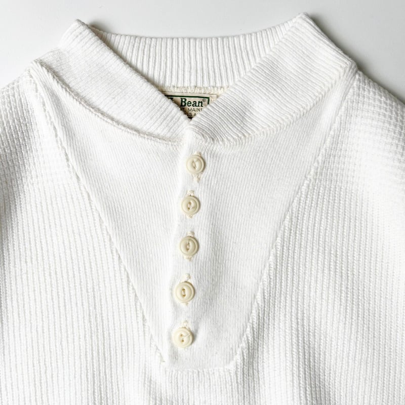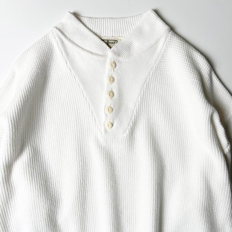 80s USA製 LLBean ヘンリーネック アーミー タイプ コットン ニット セーター XL / 80年代 アメリカ製 ビンテージ エルエルビーン 白