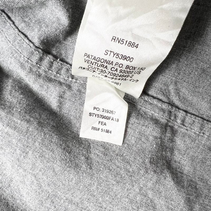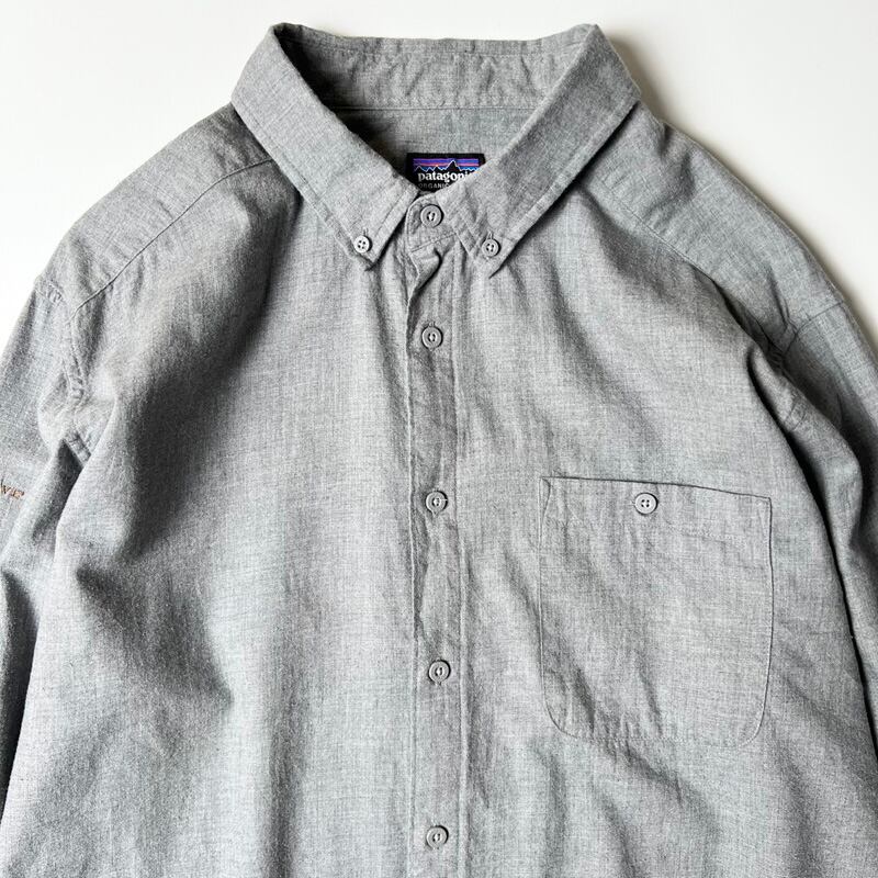 18年製 Patagonia ヴョサ リバー オーガニック ピマ コットン ボタンダウン シャツ XL / パタゴニア 無地 長袖 グレー 企業物 企業 刺繍