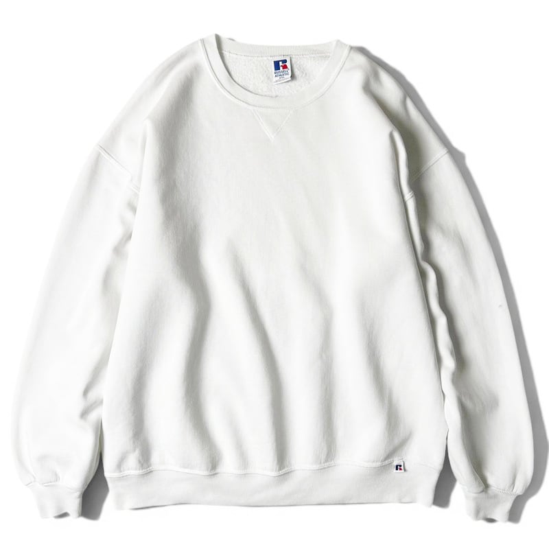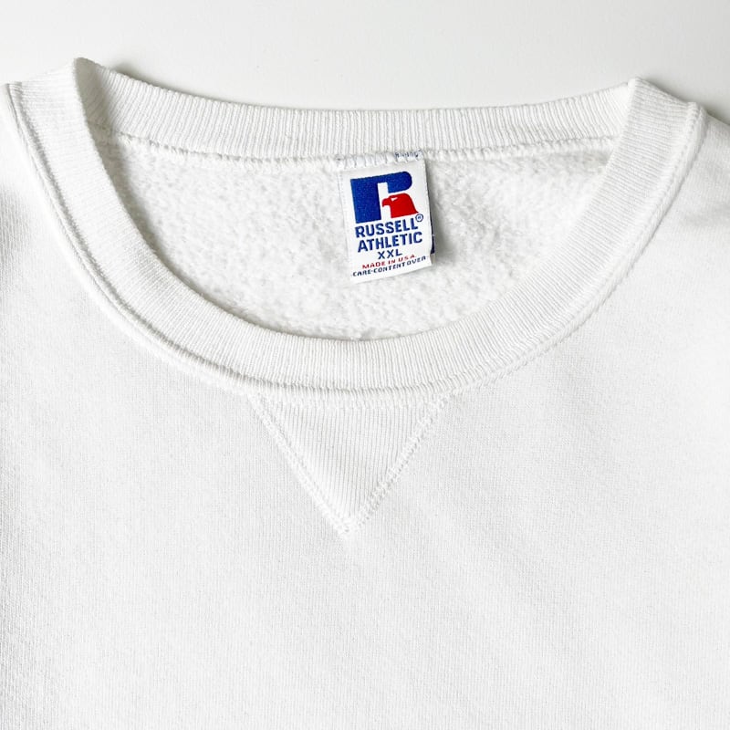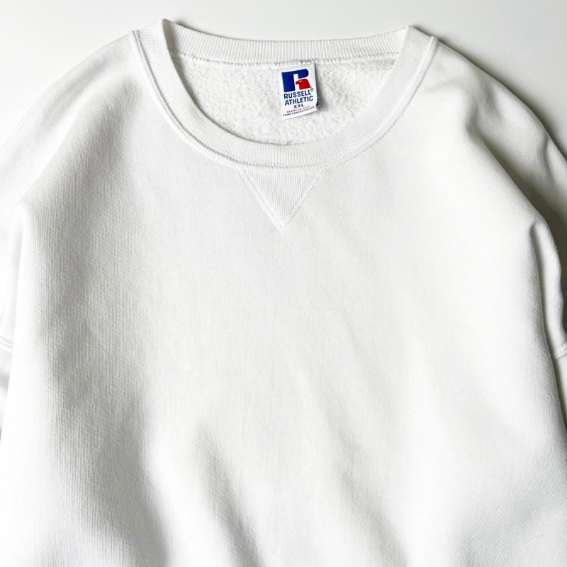 90s USA製 RUSSELL 無地 前V スウェット トレーナー XXL / 90年代 アメリカ製 オールド ラッセル 裏起毛 ホワイト 白 スエット