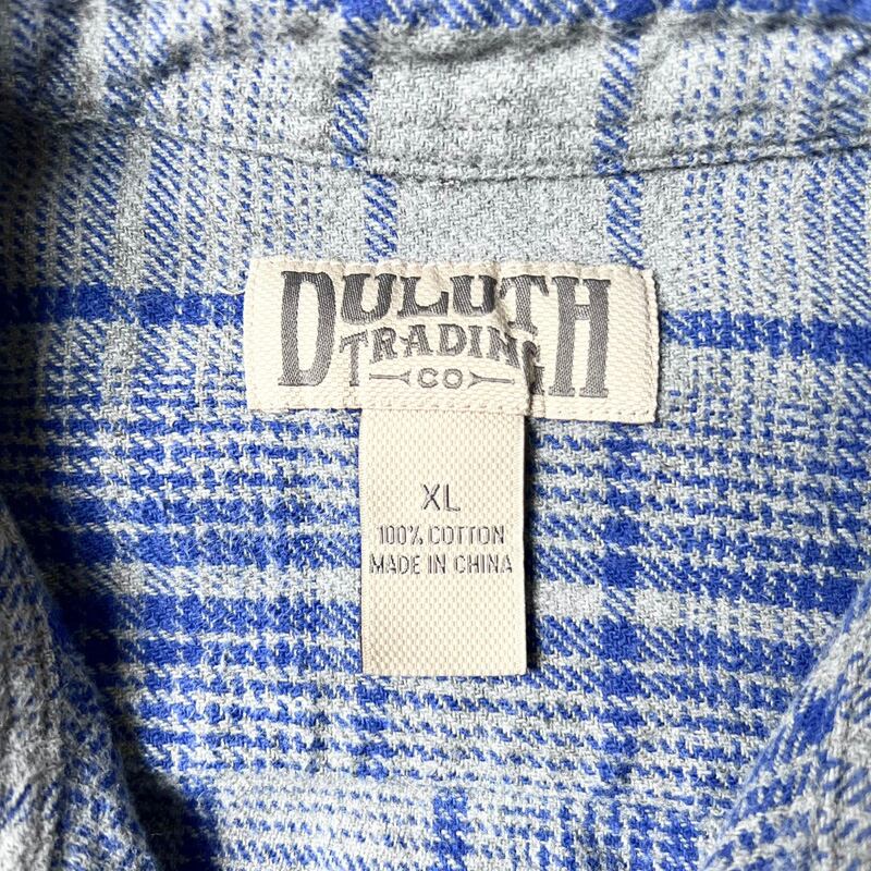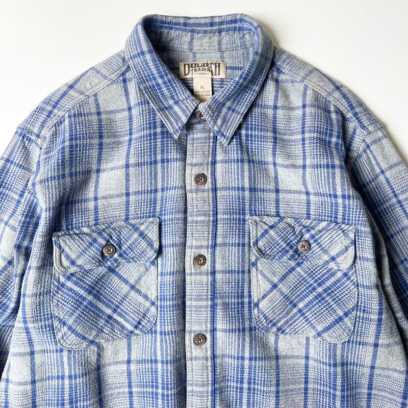 Duluth Trading チェック 長袖 コットン ヘビー フランネル シャツ XL / オールド ネルシャツ ブルー グレー ヘビーネル