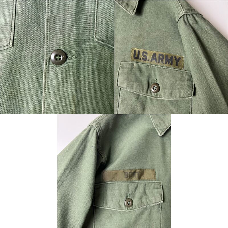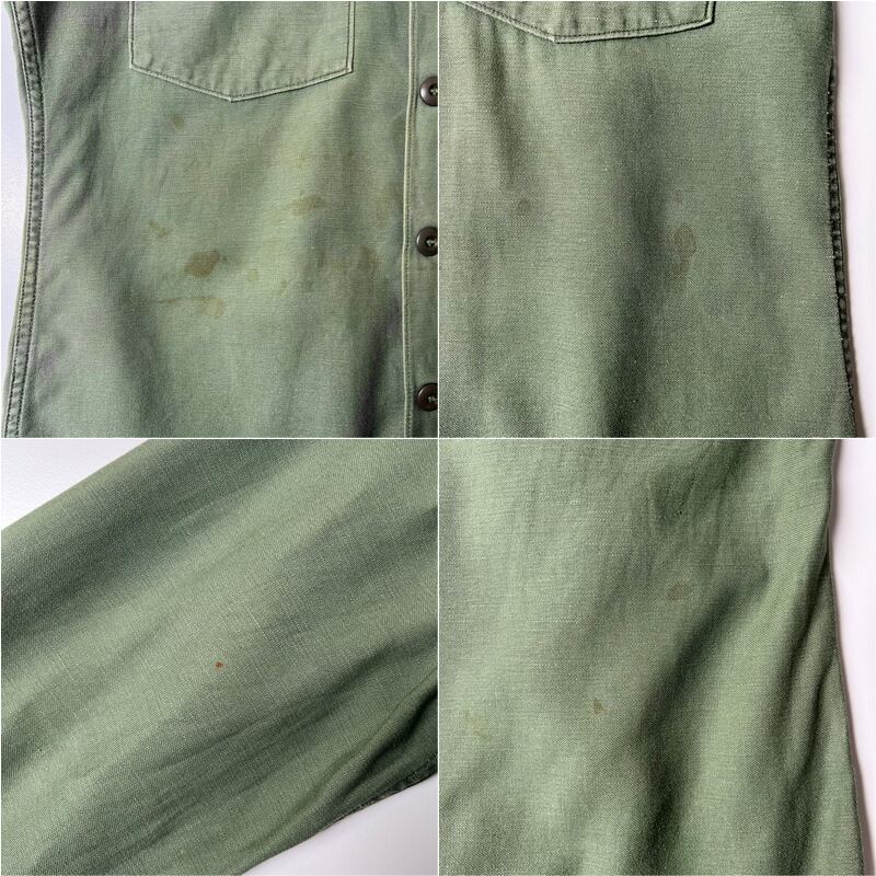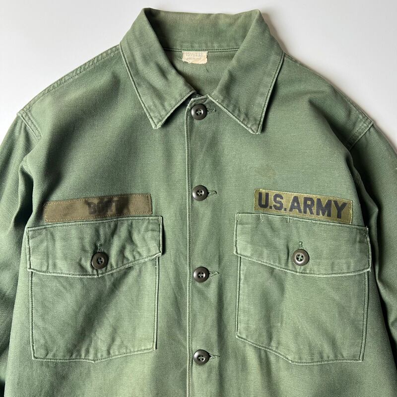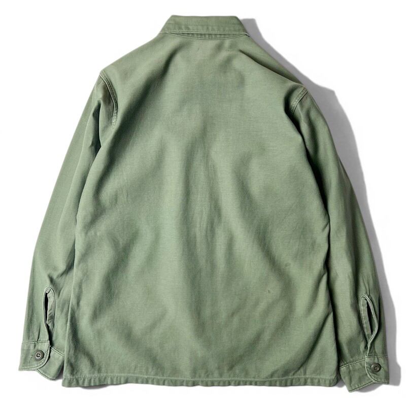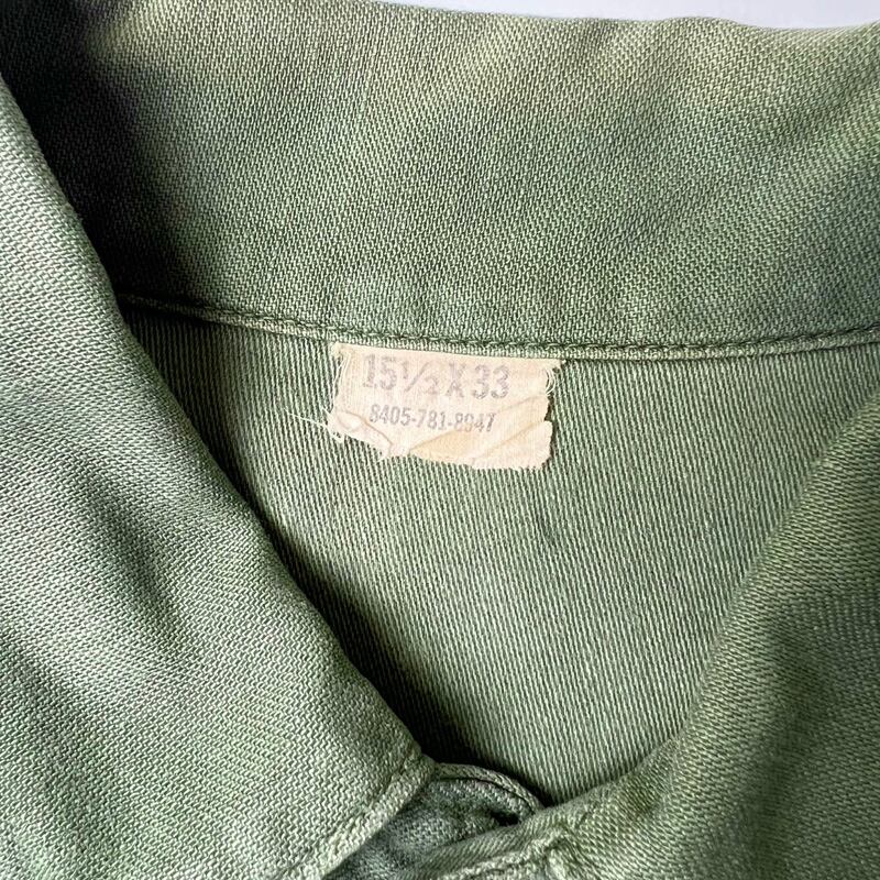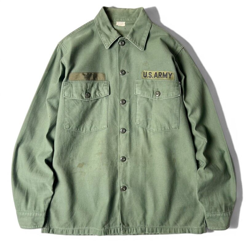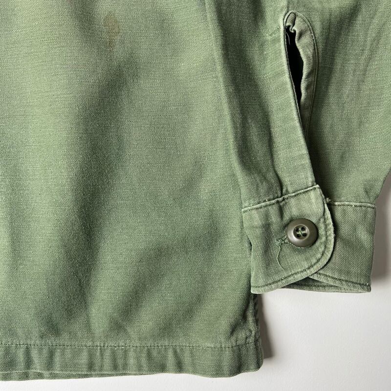 60s US ARMY 米軍実物 OG-107 コットン サテン ユーティリティ シャツ 2nd 15 1/2 シャツ袖 / 60年代 ビンテージ ミリタリー ジャケット