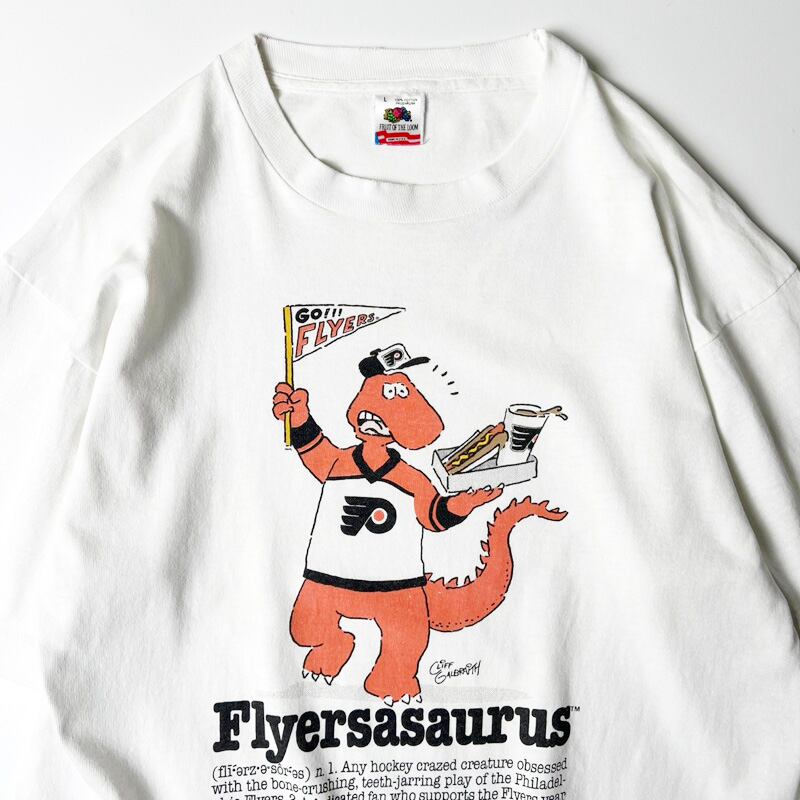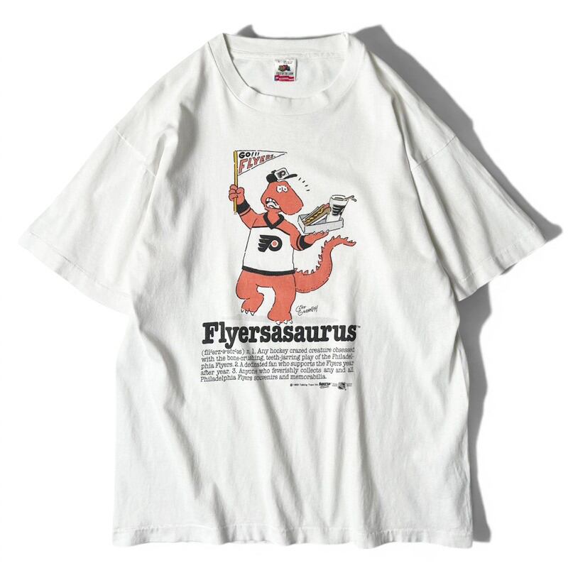 80s USA製 恐竜 NHL キャラクター イラスト プリント Tシャツ L / 80年代 アメリカ製 ビンテージ シングル ステッチ アニマル アート